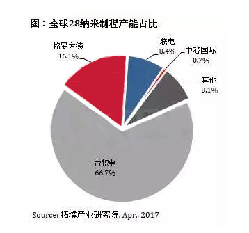 根據(jù)拓璞產(chǎn)業(yè)研究院資料顯示,在此之前中國大陸本土純晶圓代工廠商只有中芯國際量產(chǎn)了28納米制程晶圓,但其28納米晶圓產(chǎn)能全球占比不足1%,與方德(16.1%)、臺積電(66.7%)、格羅聯(lián)電(8.4%)等相比仍有較大差距。