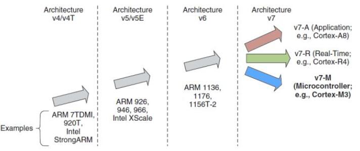 6.ARM結(jié)構(gòu)的發(fā)展V4(ARM7)、V5(ARM9)、V6(ARM11)、V7A/R/M(Cortex系列)